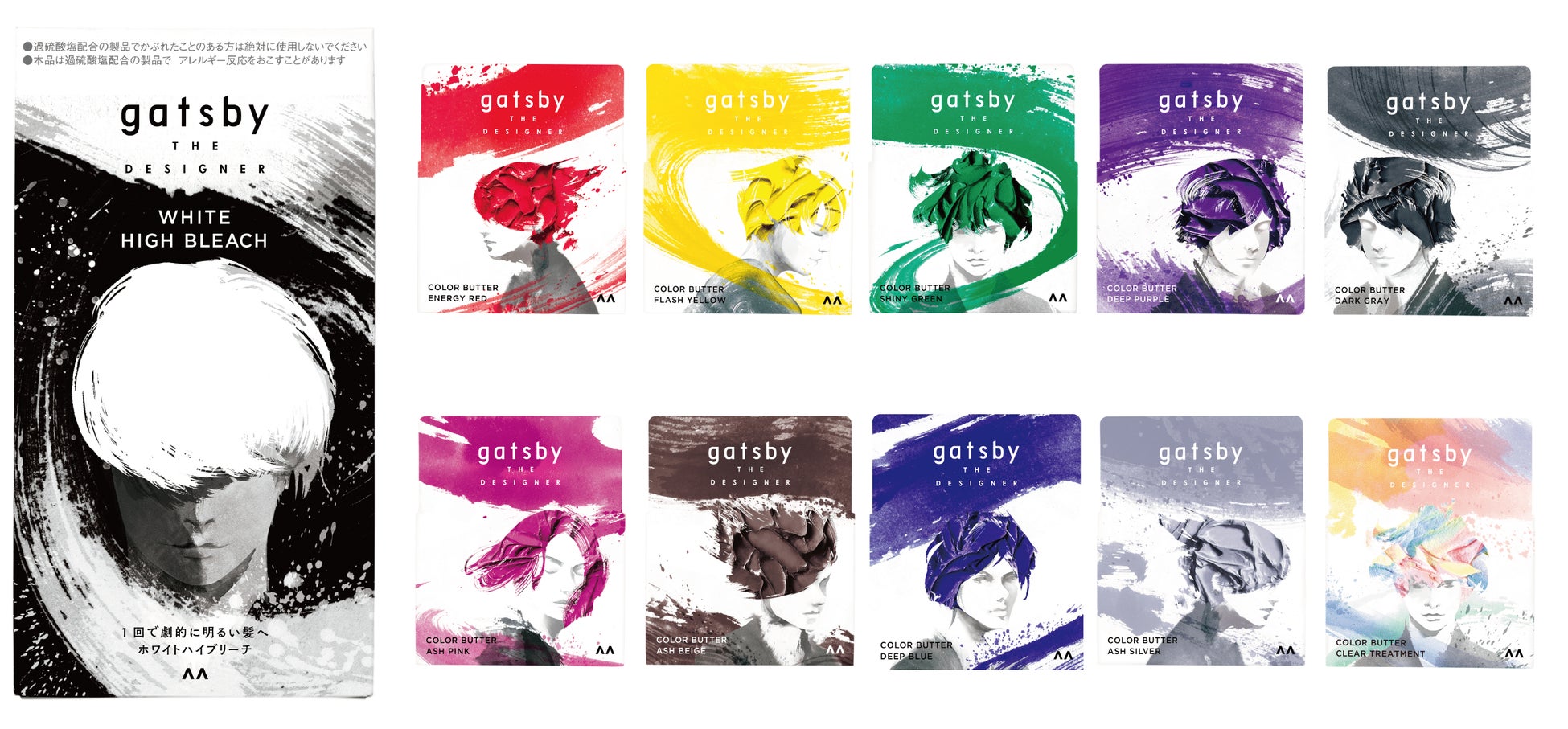 そこでギャツビー ザ デザイナーから、「ヘアカラーリングシリーズ」を発売します。トレンドのホワイトヘアーやビビッドカラーのベース作りができる「ホワイトハイブリーチ」と、カラーバリエーション豊富な「カラーバター」全10アイテムです。セルフでハイクオリティな髪色をデザインでき、カラーバターは混ぜて使うこと※2で色味の調整ができるので、自分だけのオリジナルカラーを楽しむことも可能です。髪色で自己表現をもっと楽しんでもらえるようサポートします。