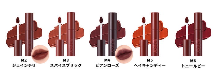 2019年に 発売した「バイト ザ ビート メロウティント」はマシュマロのような柔らかいテクスチャーと独特なカラーが有名です。特にテラコッタブラウンカラーの<M2.ジェインチリ>と個性的なバーガンディカラーの<M4.ビアンローズ>は口コミで評判があり、人気の高いメロウティントの代表的カラーです。 メイクで自分らしさを表現したいという方に、とてもオススメです。