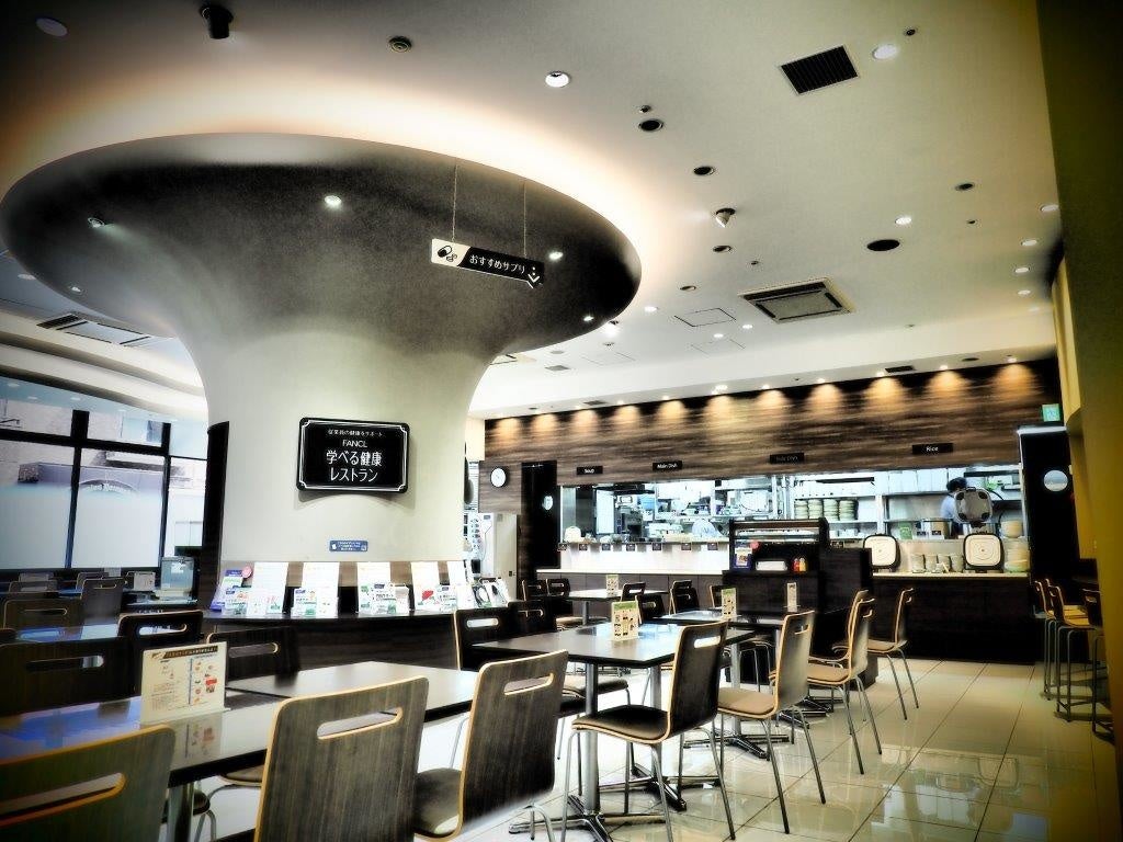 2017年8月から運営しているファンケル本社ビル1階にある社員食堂。従業員の健康維持のために開発した健康メニューを提供している。健康メニューとは、塩分が2g前後、野菜量120g、食物繊維6g以上、適正カロリー、当社の健康食品である発芽米や青汁の使用を特徴としたメニュー。従業員の毎日の食事から健康をサポートすることで、健康寿命を延ばし、健康経営のさらなる推進を目指して開発。