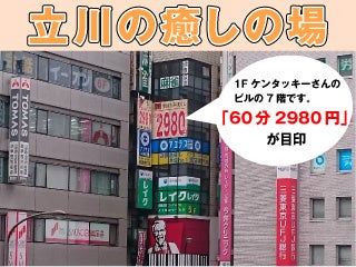 リラクゼーションサロンもみの匠 立川店は立川駅北口のロータリー、1階がケンタッキーさんのビルの7階。