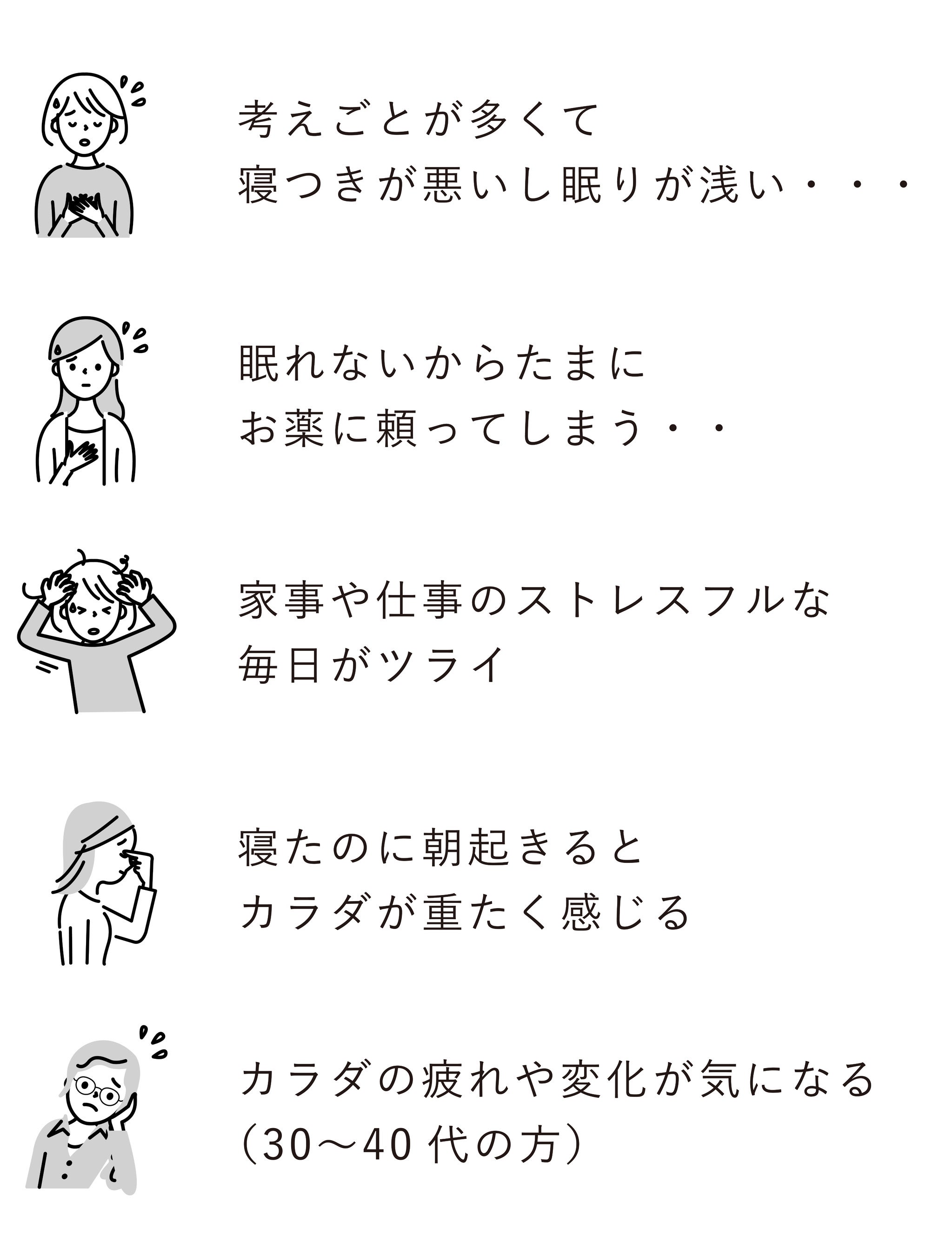 ■ 睡眠不足、疲れ、ストレスをケアしたい方へ。