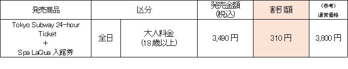 • ■Tokyo Subway 24-hour TicketとSpa LaQua(スパ ラクーア)入館券のセット券 概要