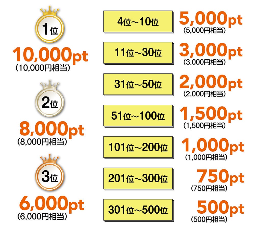 ★歩数に応じたランキングポイント(上位500位まで)付与