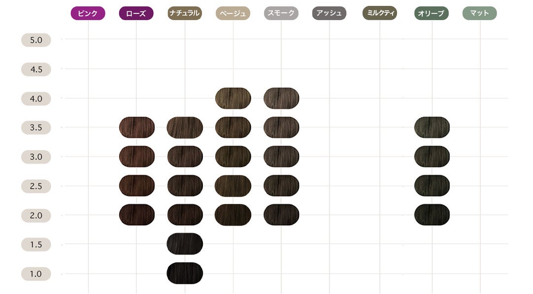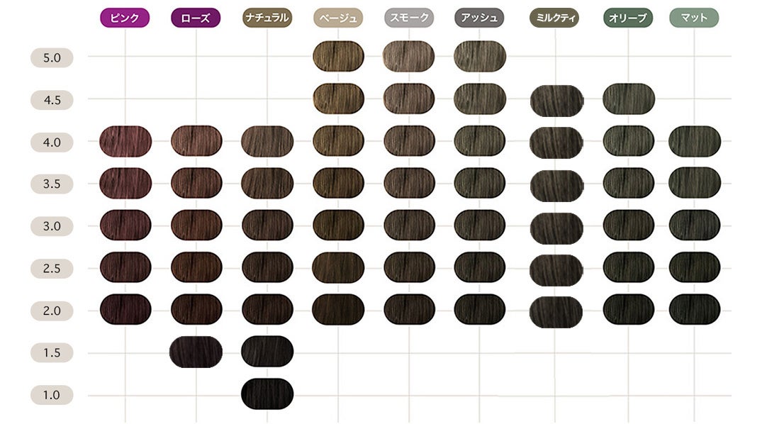 新色「ミルクティ」は柔らかな透明感と艶感を併せ持つベージュ系カラー。日本人特有のレッドアンダーを打ち消す「バイオレットアッシュ」、イエローアンダーを打ち消す「マットベージュ」を混ぜ合うことで、王道のベージュにニュアンスを加えた、柔らかな風合いのカラーを実現いたしました。
