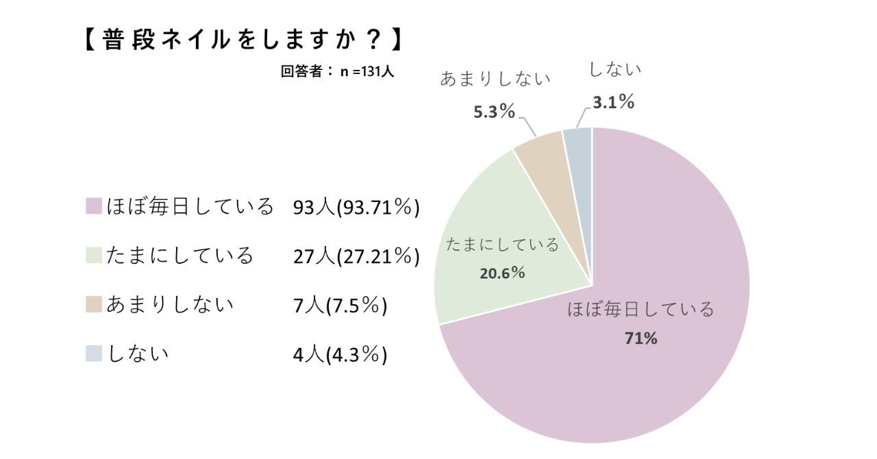 この度、株式会社JUMII TOKYO(所在地:東京都渋谷区 代表取締役:前島ゆみ)は、3月23日-27日までの期間に美容に関心のある10代から50代の女性131人へ「ネイルの不満に関するアンケート調査」を実施しました。