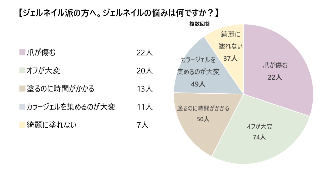 ジェルの不満は、爪への負担が大きい事やオフの大変さが挙げられています。