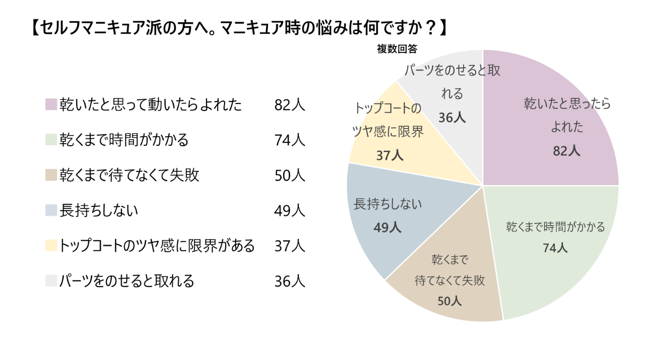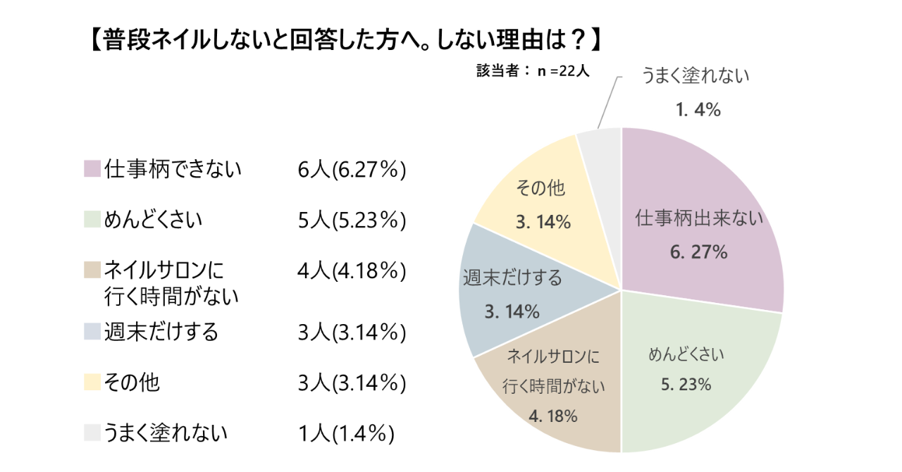 ネイルを楽しみたいけどネイルサロンに行くにはハードルが高く、セルフネイルをしているも不満があることがわかりました。