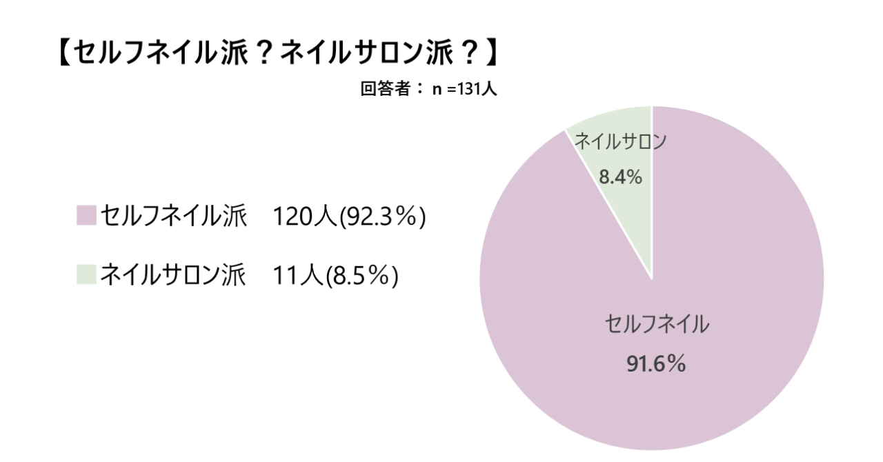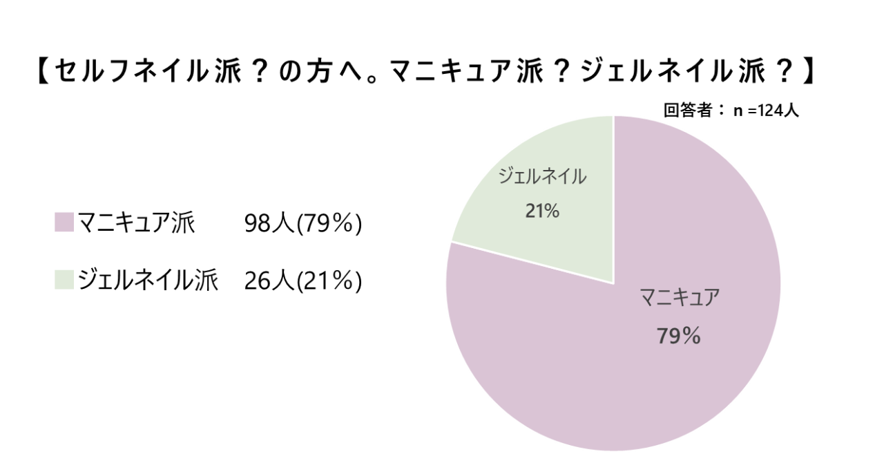 セルフ用ジェルネイルが増えている中、やはり手軽なマニキュア派の方が多い結果となりました。