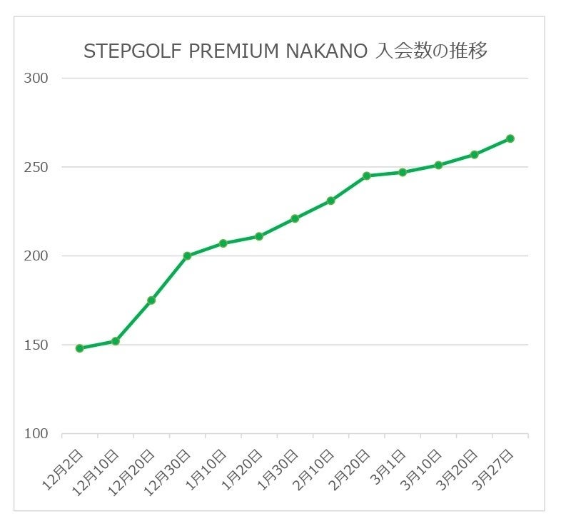 その第1号店であるSTEPGOLF PREMIUM NAKANOは中野セントラルパークで昨年12月2日に開業し、グランドオープン時に既に150名近くの方に入会していただきましたが、それから3か月、現在260名以上もの会員様に通っていただき、会員数を伸ばし続けています(2022年3月末日)。想定を上回る高評価と昨今のゴルフ需要、また、従前の地域密着だけではない都市型ゴルファーのニーズにもこたえるべく、STEPGOLF PREMIUM の2号店、STEPGOLF PREMIUM YURAKUCHOを開業することにしました。