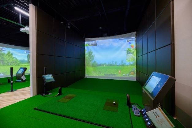 ②全打席にシミュレーション機器を完備した最新施設です。画面のスクリーン上にはゴルフ場の臨場感溢れるビジュアルで、ラウンドをしているかのような体験を実感できます。高性能センサーが優れたデータ集計を可能にし、効率的な上達・スキル向上をサポートします。