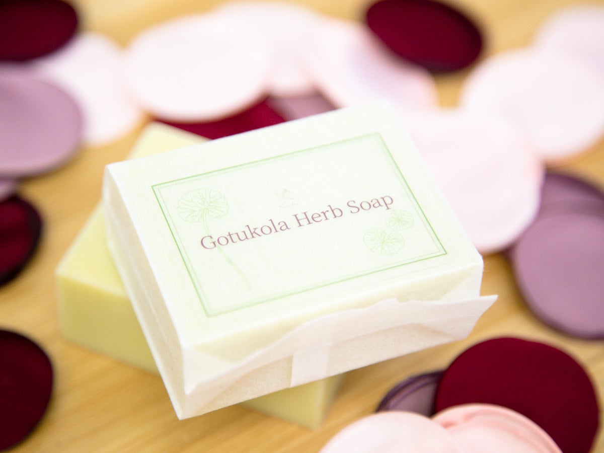 原材料としてのゴツコラの特長と、コールドプロセス製法の特長が合わさり、ハーブソープの特長である心地よい香りは、フェイシャルはもちろんのこと、女性が気になるデリケートゾーンのお手入れや敏感肌の方にとっても最適なハンドメイドソープなのです。