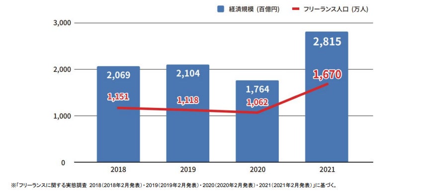 (出典:【ランサーズ】フリーランス実態調査2021 ②経済規模も昨年から約10兆円増加で過去最大)