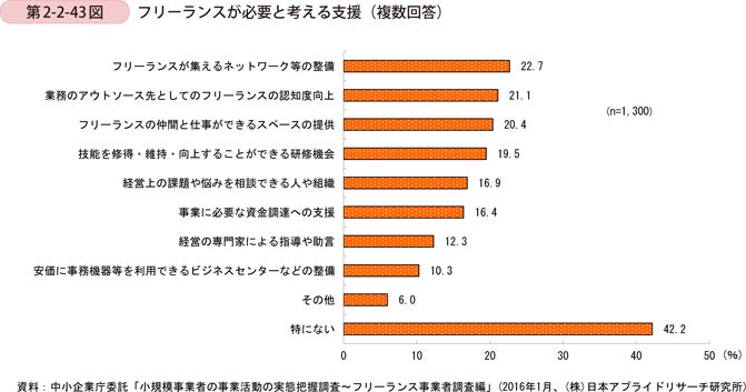 (出典:中小企業庁 2016年版 小規模企業白書 フリーランスが必要と考える支援)