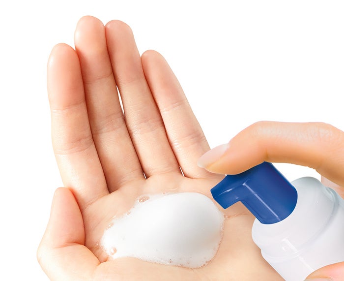 ・泡で出るので、1回分の量を手に取るとき、ポンプを押し切っても飛び散らず、こぼれにくい設計。