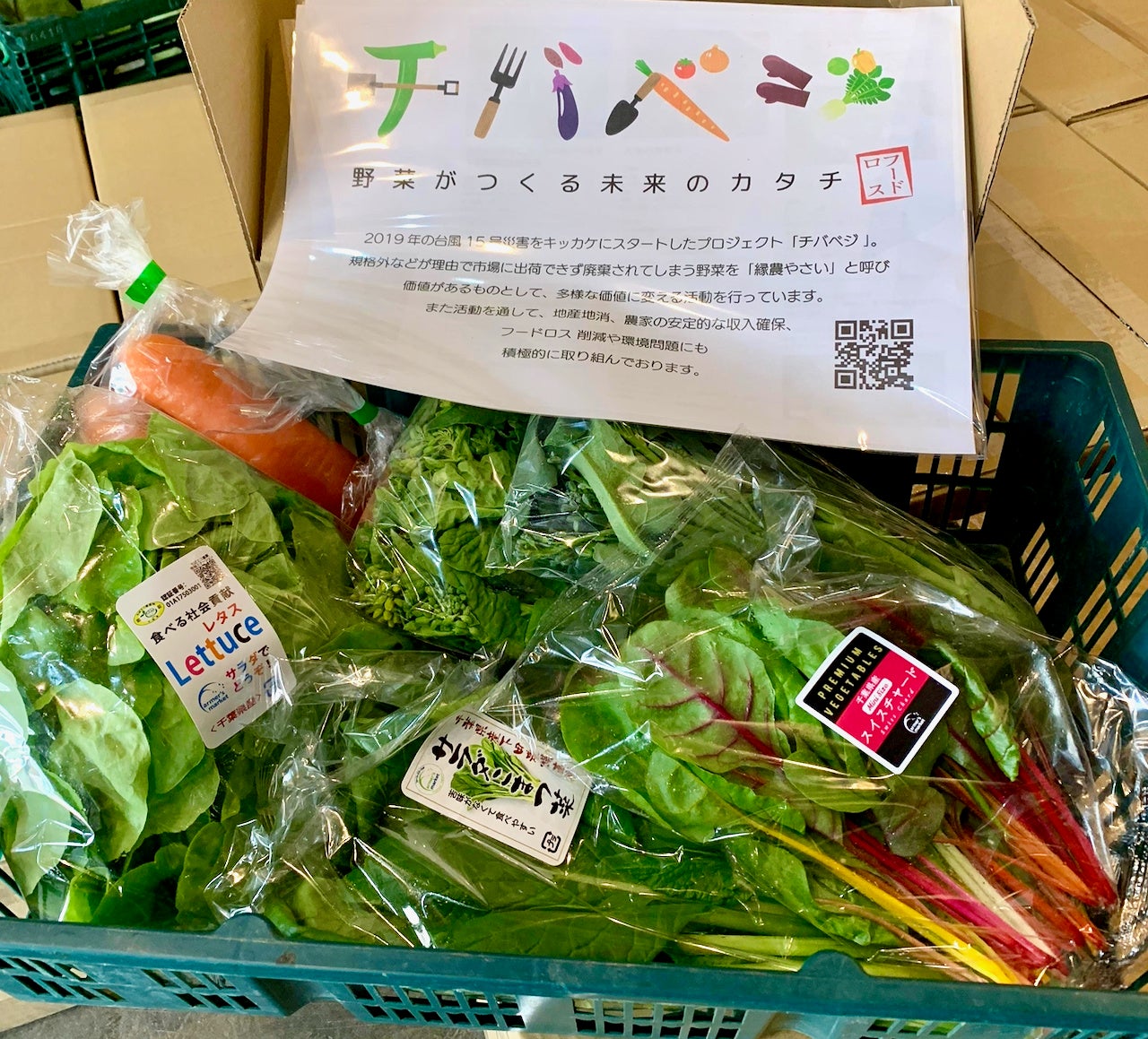 本研修プログラムで使用する野菜はすべてチバベジから仕入れた規格外を含む新鮮な野菜になります。チバベジでは2019年に千葉県の農家さんを襲った台風被害から味や品質は問題ないものの、見た目や傷などを理由に廃棄される予定だった野菜を扱っています。