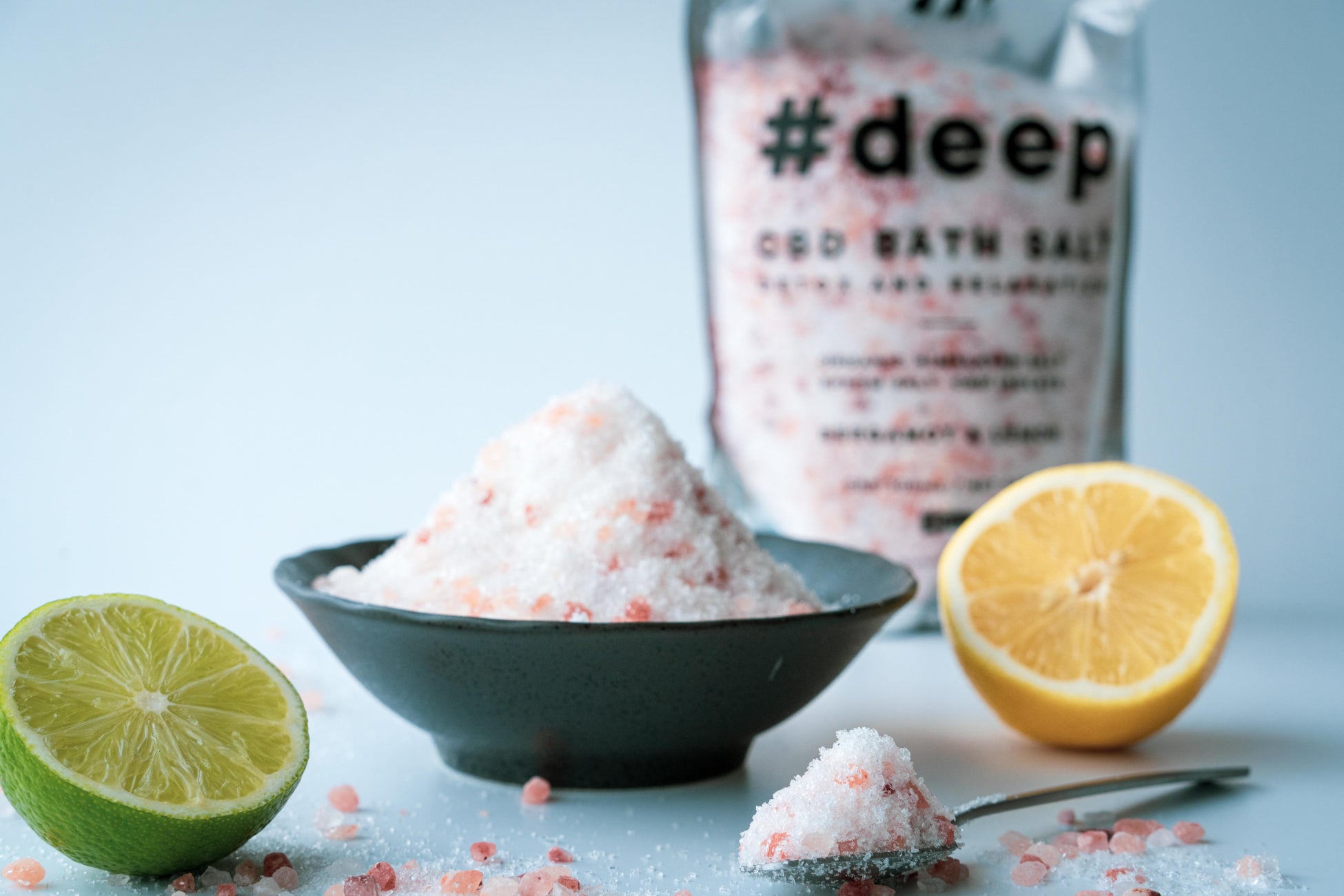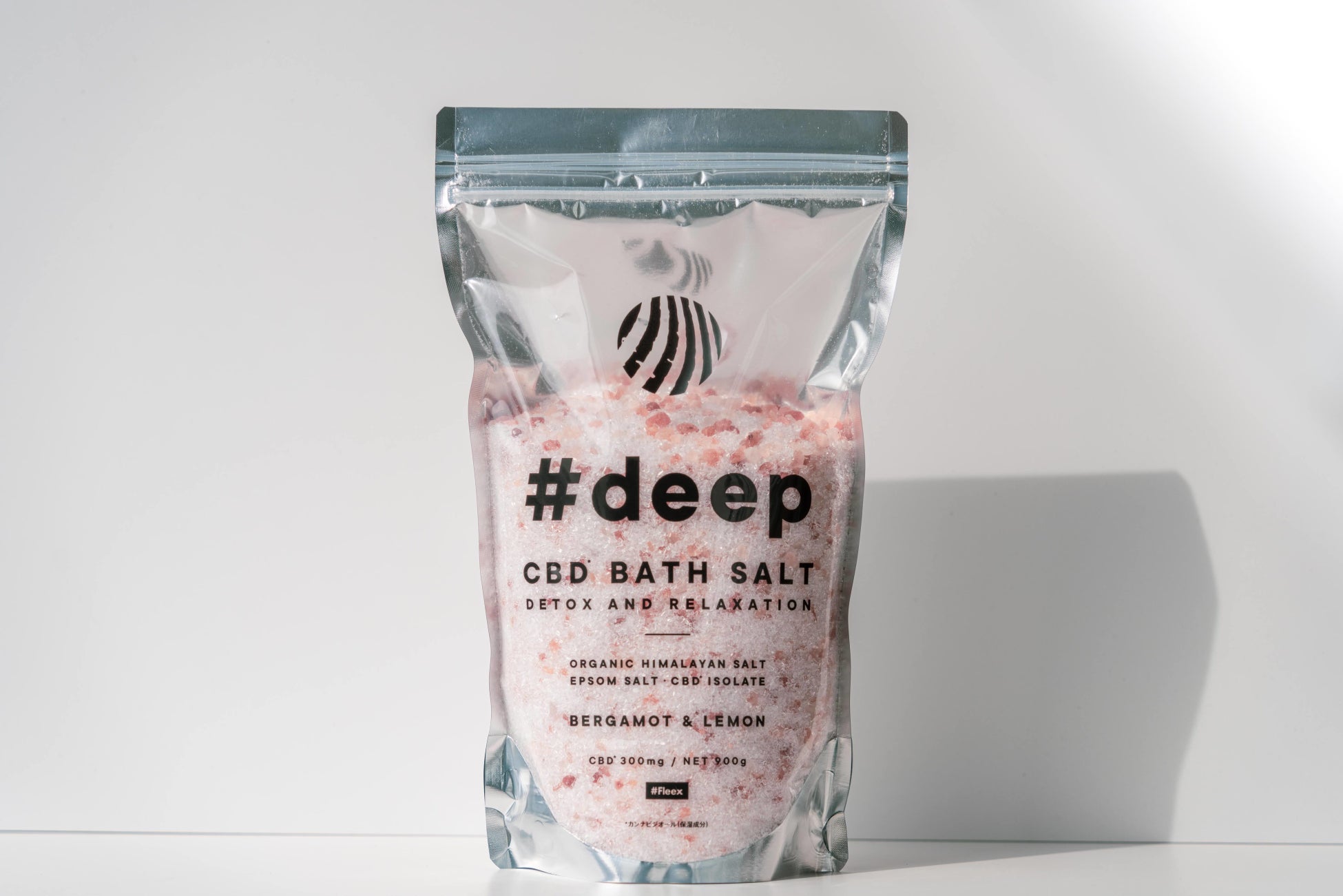 #deep(ディープ)は天然成分だけでつくられたCBD配合バスソルトです。ベルガモットとレモンの洗練された香りで極上のリラックスタイムをお楽しみください。