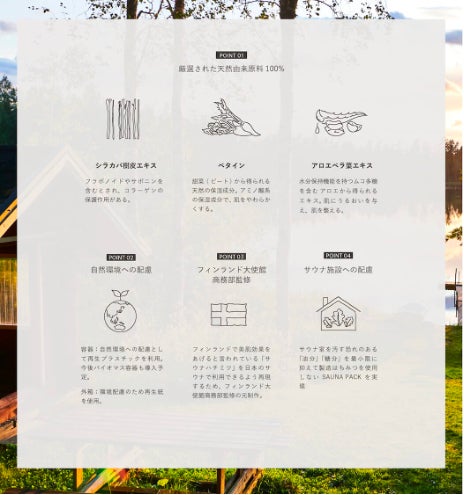 サウナの本場北欧のフィンランドでは「サウナハニー」という商品があり、サウナ入浴前に顔や身体に塗布することで保湿・美容効果を上げるという慣習がありますが、主成分がハチミツのため、日本で同じ商品を導入しようとするとハチミツの糖分により施設を汚してしまうという課題がありました。