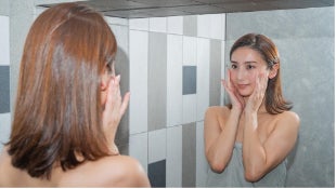 3. お風呂から出て、水またはぬるま湯で顔に付いたパックを洗い流し水気を拭き取る。