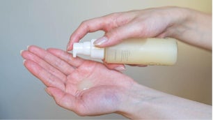1. 体と顔をよく洗い、 水気を拭き取りサウナパックを適量手に取る。