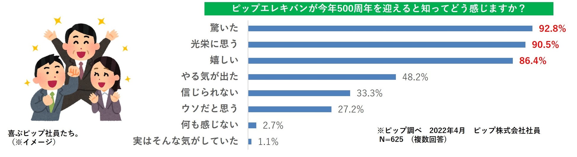 今回の新発見を受け、ピップ株式会社社員を対象にしたアンケートでは、「驚いた」と回答した社員が最も多く、次いで「光栄に思う」「嬉しい」と言った回答も上位に挙がりました。このことから、社員の多くは好意的に受け止めている様子が伺えます。