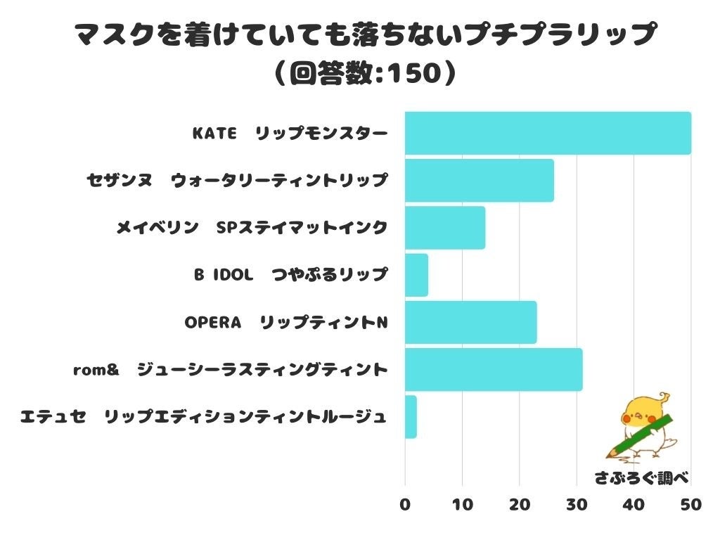 マスクを着けていても落ちないプチプラリップをアンケートにて調査したところ、1位は「KATE リップモンスター」でした。