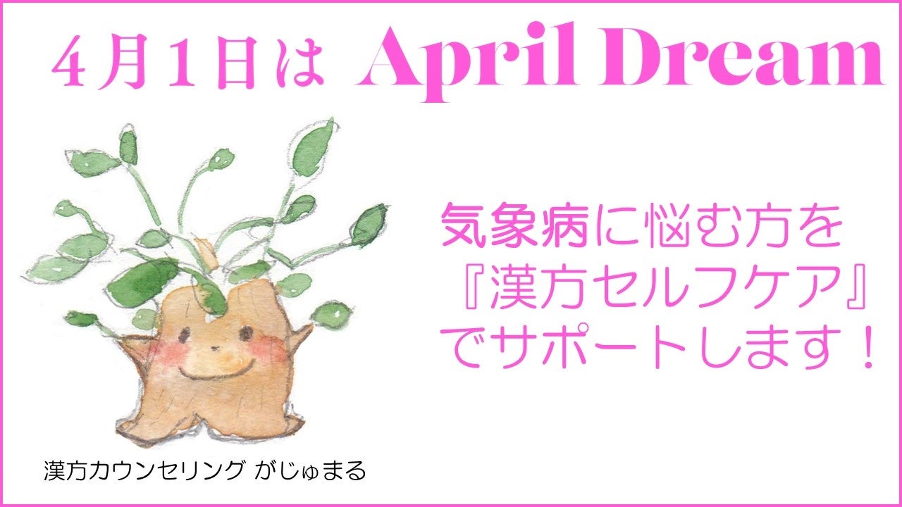 当店は、4月1日を夢を発信する日にしようとするApril Dreamに賛同しています。このプレスリリースは「漢方カウンセリング がじゅまる」の夢です。