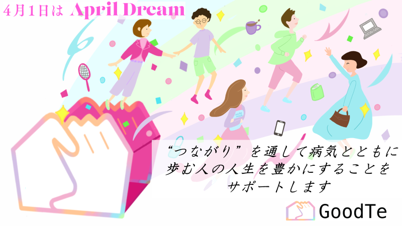 当社は、4月1日を夢を発信する日にしようとするApril Dreamに賛同しています。このプレスリリースは「株式会社グッテ(旧名:ジーケア、所在地:東京都千代田区・代表取締役 宮﨑拓郎、以下グッテ)」の夢です。