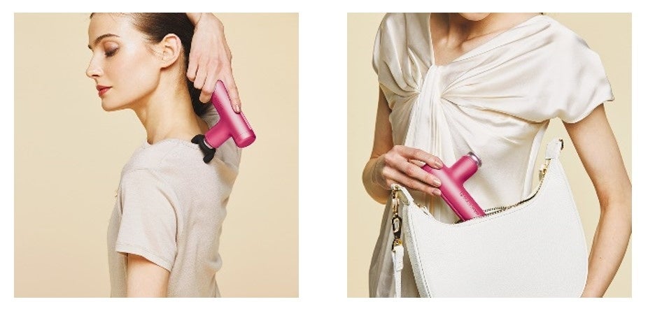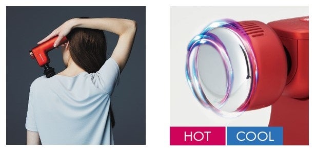 約1,000回/分~約3,200回/分*のパワフルな振動によるボディケアが可能。さらに、温冷アタッチメントを装着すれば、42℃~12℃のヒーター/クーリング機能による振動と温冷のトリプルケアも行えるようになっております。カラー展開は2色となっており、マットな質感で高級感あふれるブラック、レッドからお選びいただけます。