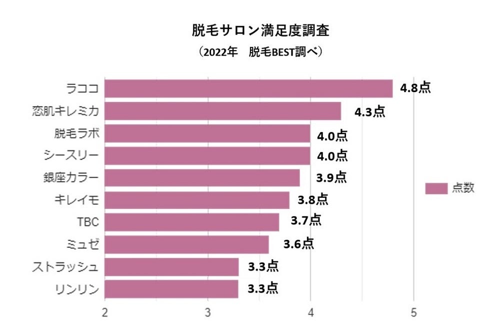 ※本調査結果やグラフ・データをご利用いただく際は、必ず「脱毛BEST調べ」とご明記ください。