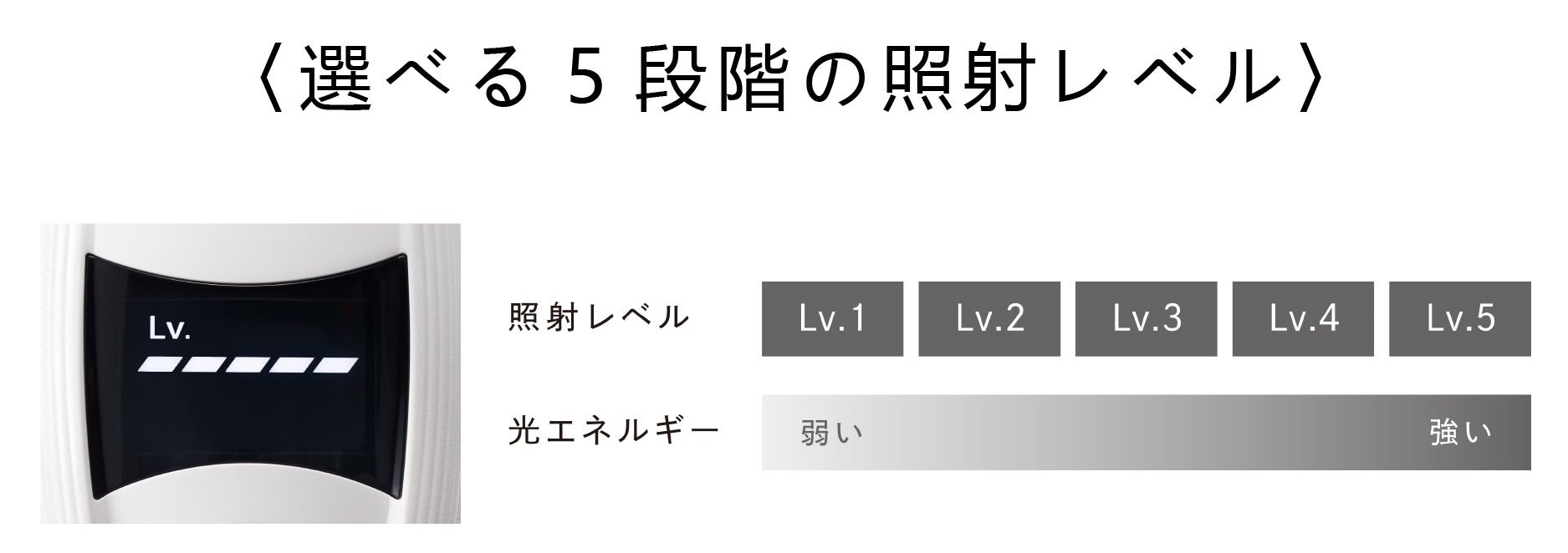 初めてのケアでも安心。選べる5段階の照射レベル
