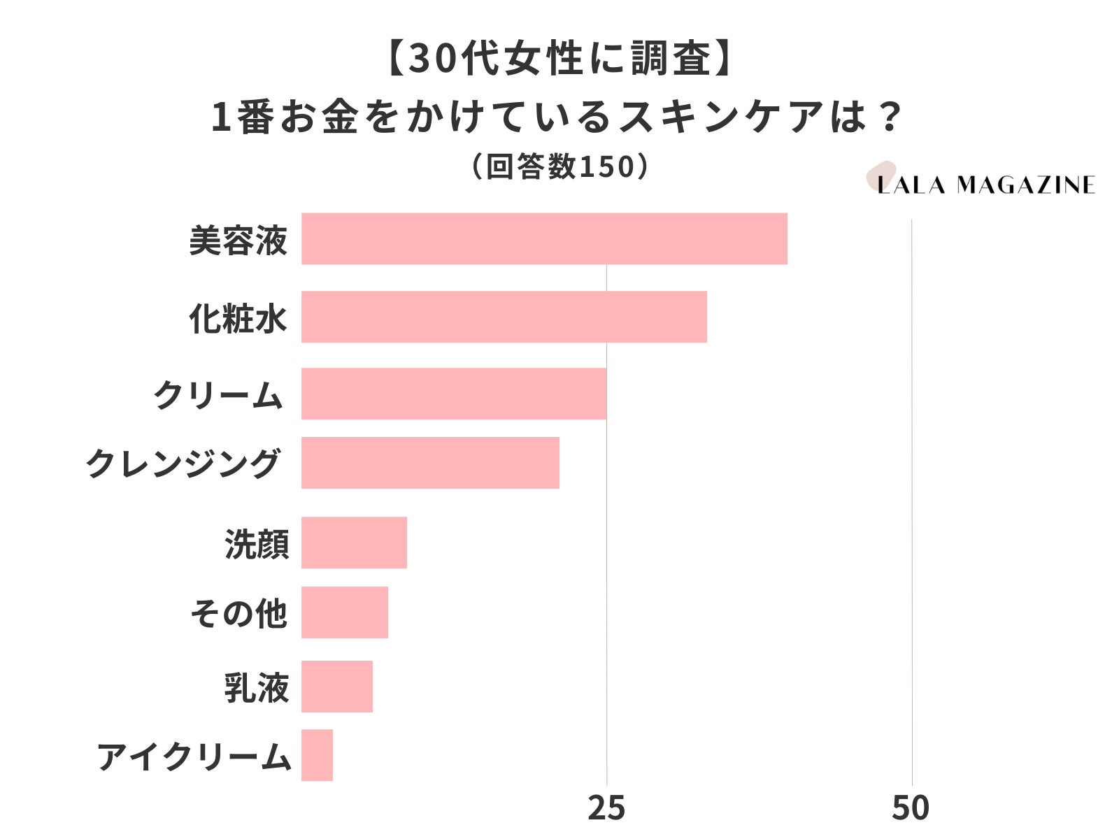 最もお金をかけているスキンケアは、スペシャルケアとしてプラスする「美容液」という結果に。