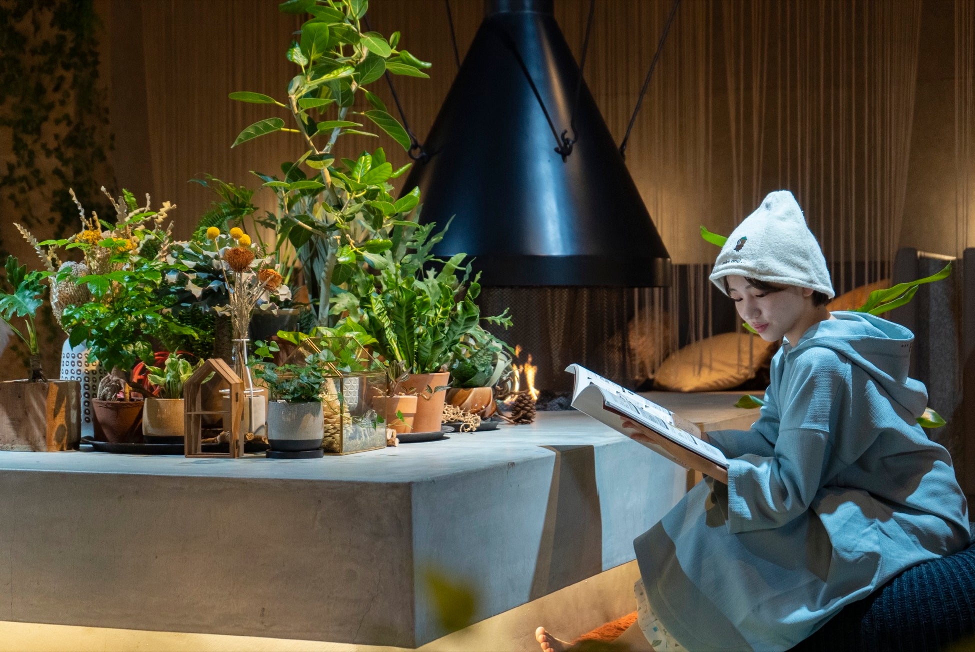 コンセプトは「カラダと心が晴れる庭」。充実のおふろ・サウナ、採れたて野菜たっぷりのごはん、裸足で過ごせる緑豊かなラウンジでお庭にいるようにくつろぎ、心身共に晴れわたる1日をお過ごしいただけます。