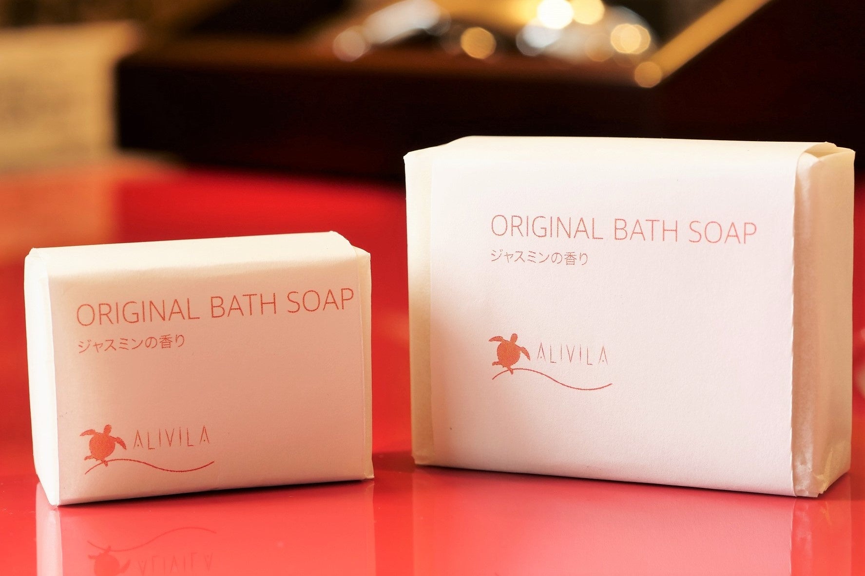 このたびさらにアリビラの香りをお楽しみいただけるバスアイテムとして、バスハーブと同じ香りの無添加石けん「オリジナルバスソープ ジャスミンの香り」が誕生しました。