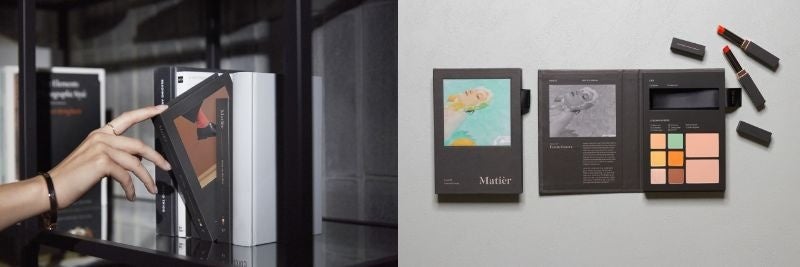 洋書のような見た目が特徴の「メイクアップブック」がSNSでも話題の「Matier」。アイシャドウ6色、フェイスカラー2色、リップ2色がセットされたブックは、一冊で調和の取れたメイクが楽しめるようにというブランドの想いが詰まった一冊。また、部屋に飾りたくなるアートのような見た目から“インテリアコスメ”として、プレゼントとして選ぶ方も多いです。