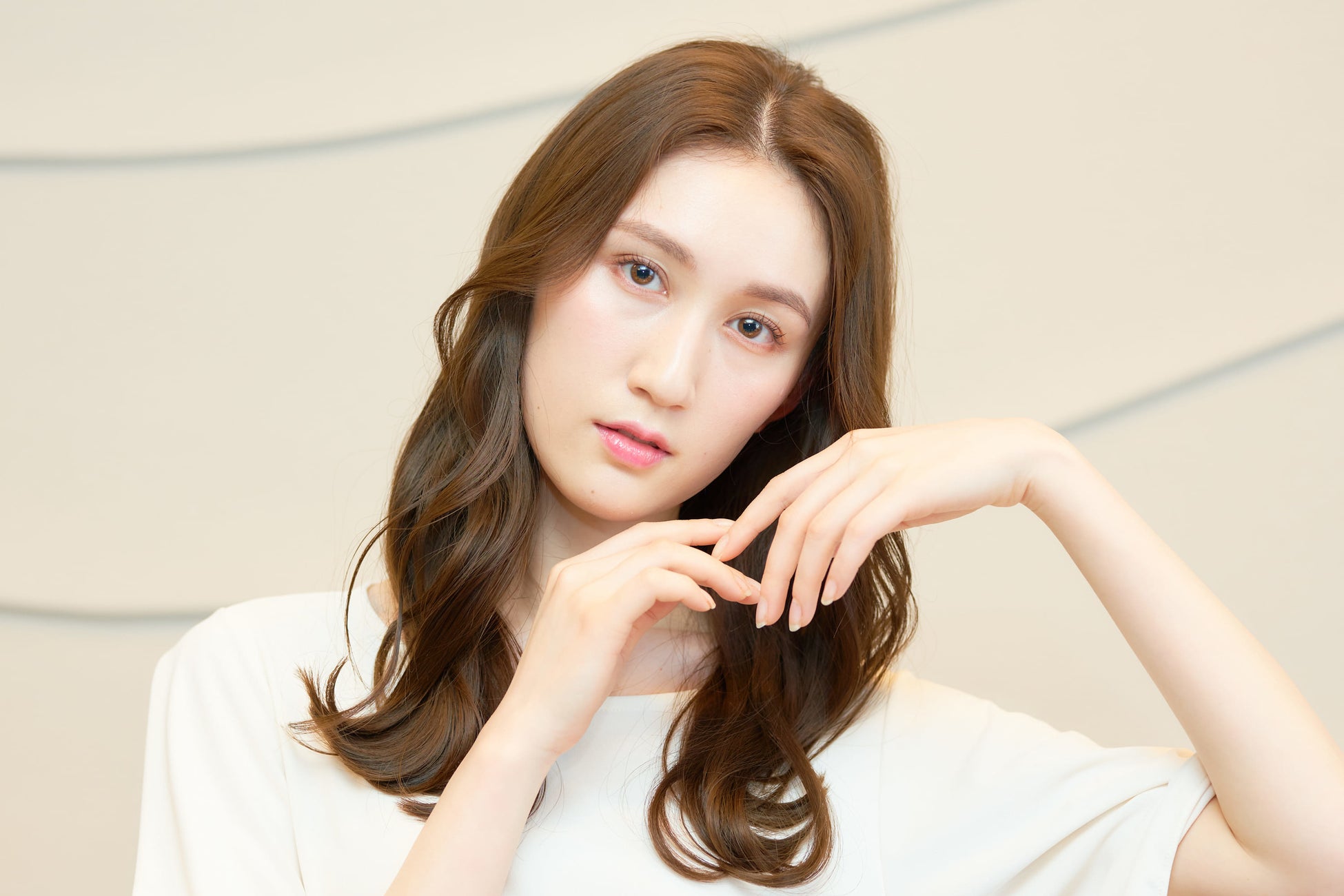 目力と抜け感を両立させたメリハリのあるおしゃれ顔メイクを教えていただきました。夢月さんからは「大人顔の方でブラウンメイクをするとコンサバな印象になりすぎてしまうと思うのですが、おしゃれ感もありつつやわらかく好印象に見えるメイクにしました!」とコメントをいただきました。