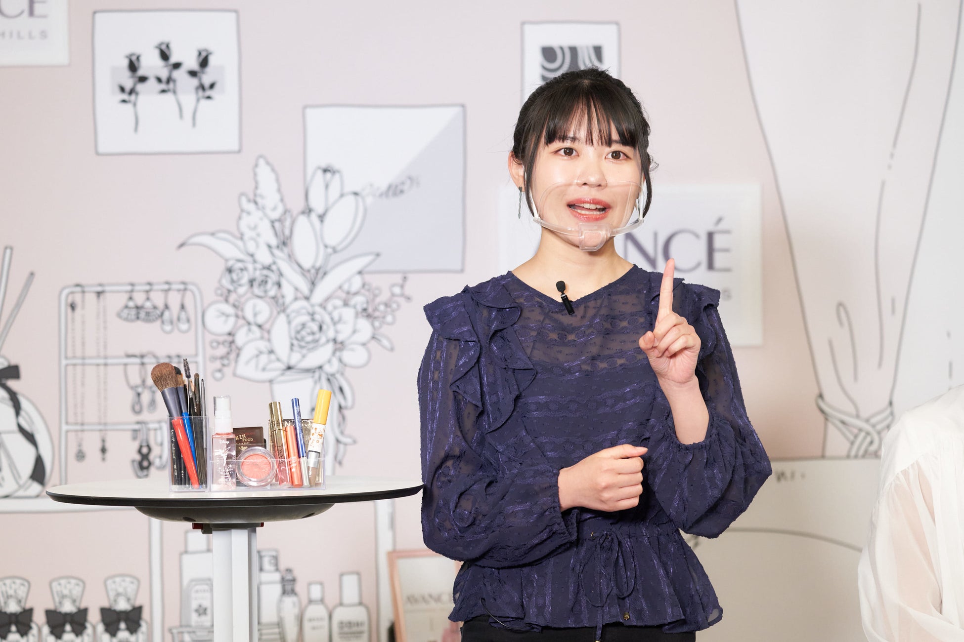 当日は、2022年4月6日(水)に発売を開始するAVANCÉの新商品について、PR・商品開発担当よりご紹介したほか、SNS「#夢月メイク」で話題のヘアメイクアップアーティストの夢月さんをスペシャルゲストにお迎えし、メイクレッスンを開催。アヴァンセの新商品「アヴァンセ アイブロウマスカラ&コート<ココアブラウン/モカブラウン>チップ&デール」などを使った、顔タイプ別の3つの春の好印象メイクをレクチャーいただきました。