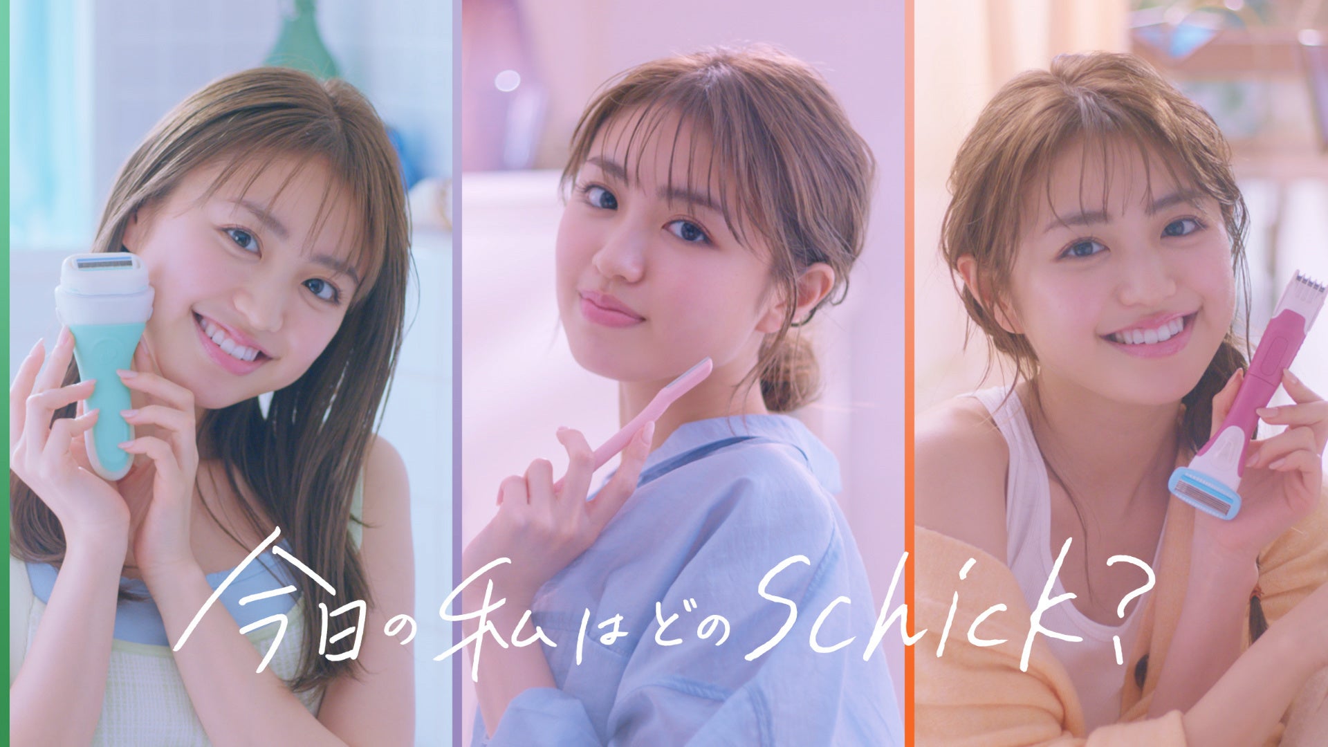 「今日の私はどのSchick?」の問いかけから始まり、ケアしたい部位や目的に合わせてSchickの商品の中から適切な商品を選ぶ楽しさを表現しています。