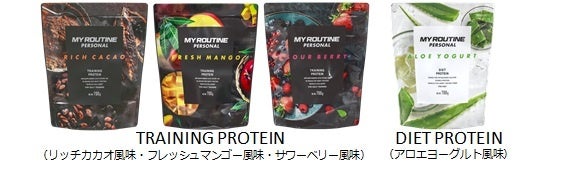マイルーティーン パーソナルは、「一人ひとりのワークアウトにフィットする、自分のためのプロテイン」をコンセプトに、理想のボディを目指したい方におすすめの「TRAINING PROTEIN」と、ダイエットやプロテイン初心者におすすめの「DIET PROTEIN」の2ラインで、全4フレーバーを展開しています。「TRAINING PROTEIN」はリッチカカオ風味、フレッシュマンゴー風味、サワーベリー風味、「DIET PROTEIN」はアロエヨーグルト風味になります。目的に合わせた商品設計と、スタイリッシュなパッケージデザインがポイントです。