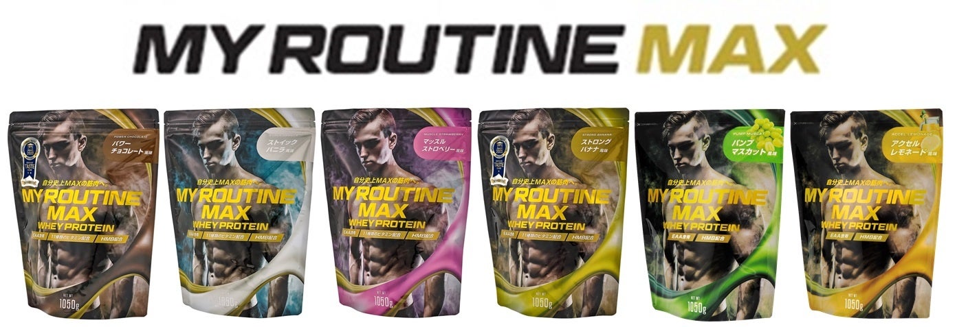 「MY ROUTINE MAX(マイルーティーン マックス)1,050g」は、1食あたりタンパク質量25g以上、最大26.8g摂取できる配合量を実現しています。(フレーバーにより異なります。)