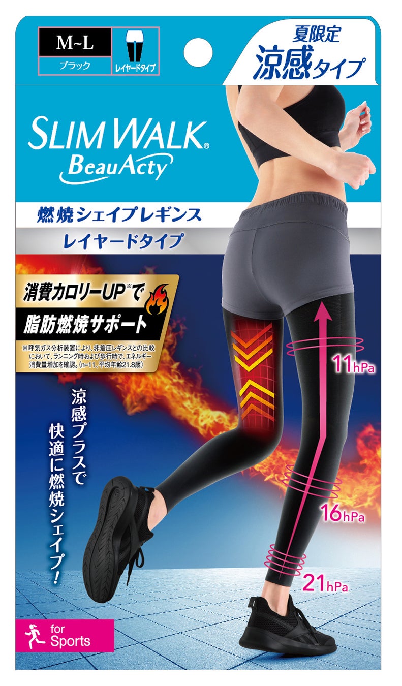 ピップ株式会社(本社:大阪市中央区、代表取締役社長:松浦由治)の着圧レッグウェアブランド「スリムウォーク」は、美脚にこだわった“着圧×スポーツ”のブランド「スリムウォーク Beau-Acty (ビューアクティ) 」シリーズより、「スリムウォーク BeauーActy 燃焼シェイプレギンス 涼感タイプ」を、2022年4月8日(金)よりピップ ウエルネス通販・Amazon・一部のドラッグストアなどで数量限定で販売開始します。「スリムウォーク Beau-Acty 」シリーズ初の涼感タイプの着圧レギンスとなります。