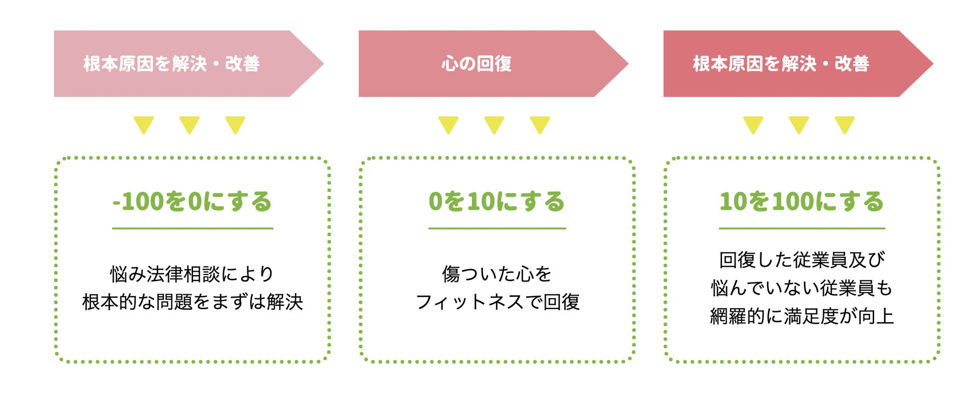 3つの段階に分けることで、根本的な問題を解決して傷ついた心の回復から向上を実現します。