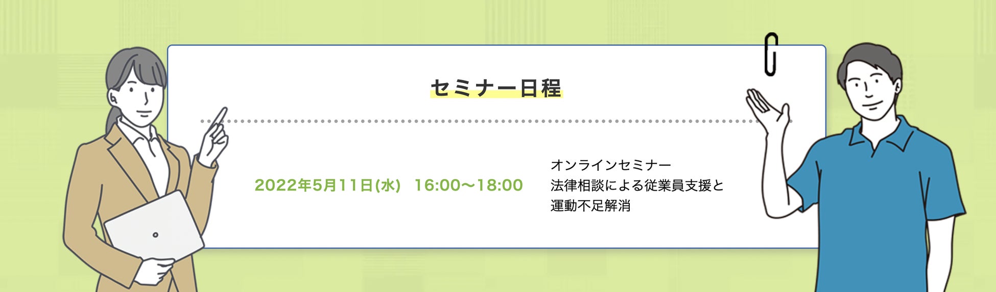 法律相談による従業員支援と運動不足解消をテーマに共同開催。当日は両社の代表が登壇します。