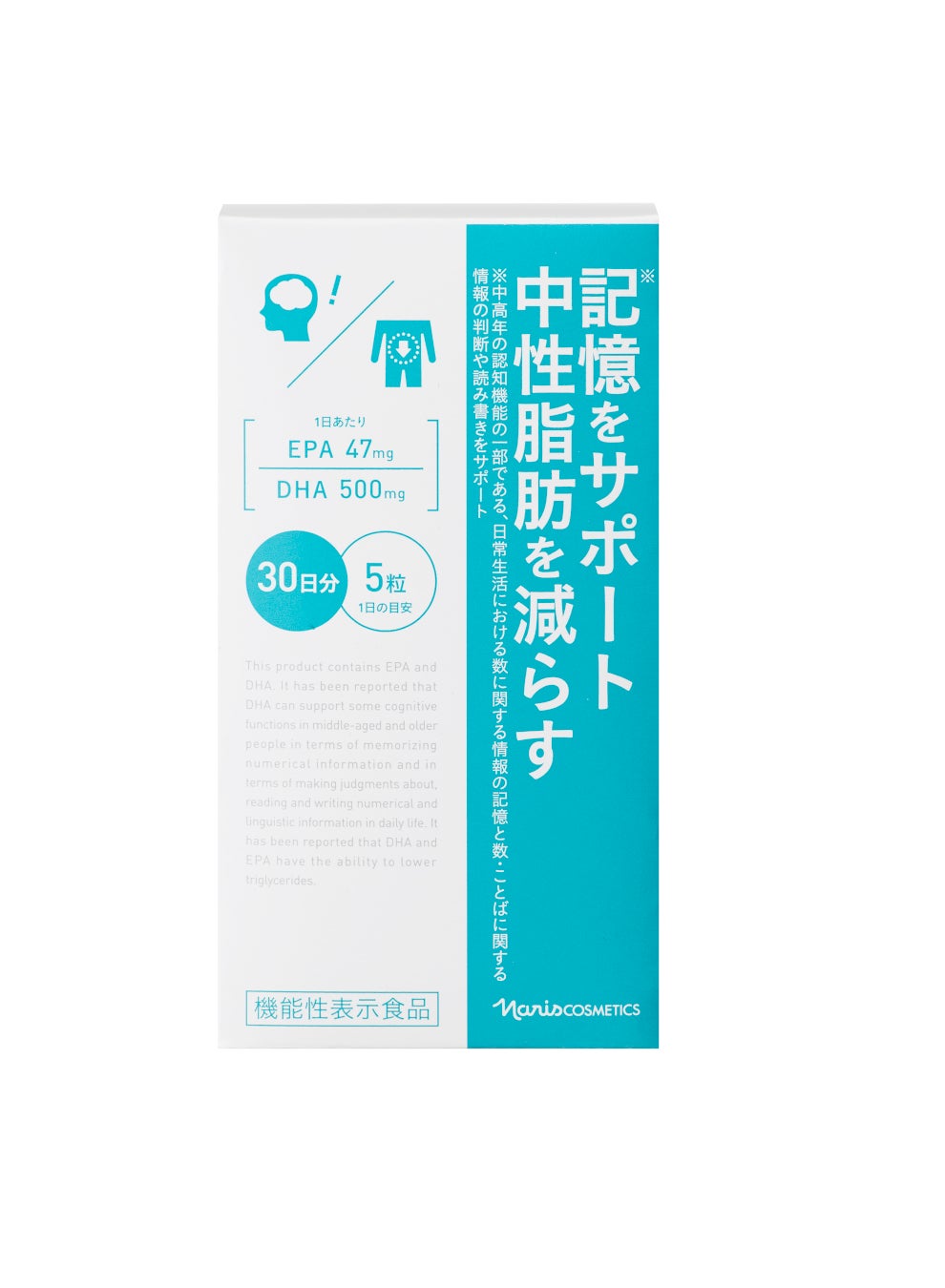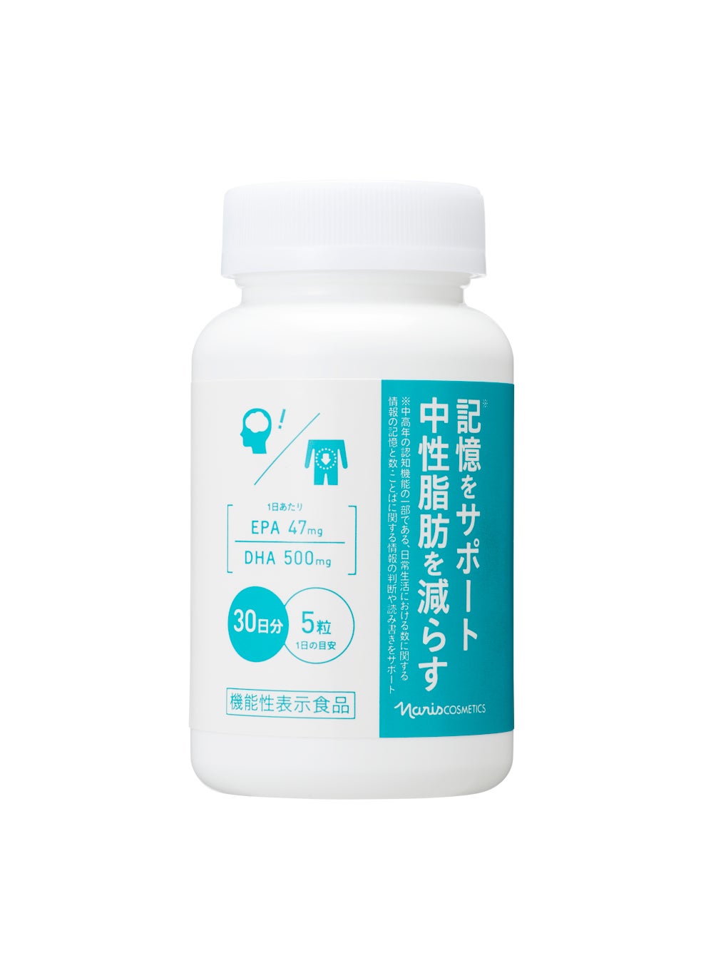 株式会社ナリス化粧品(本社:大阪市福島区 代表取締役社長:村岡弘義)は、中高年の認知機能の一部である、日常生活における数に関する記憶と、数とことばに関する情報の判断や読み書きをサポートし、中高年の中性脂肪を減らす機能性表示食品の「ナリス EPA&DHA」を5月21日から、訪問販売及び全国のナリス化粧品店舗と通販(ナリス オンラインストア)で発売します。超高齢化社会にある現状、認知機能や、肥満が引き起こす生活習慣病への不安は、コロナ禍により、対面での会話の減少や、運動不足の状態を招いていることで増加しています。これからの中高年の悩みに、1つのアイテムでふたつの機能を有する機能性表示食品を提供して、応えたいと考えます。