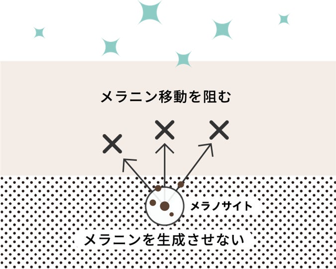 「ナイアシンアミド」は、メラノソームがメラノサイトからケラチノサイドへと移動するプロセスを抑制する効果があります。また、活性酸素を除去する効果もありますので、メラニンの生成をダブルで抑制することが期待できるのです。