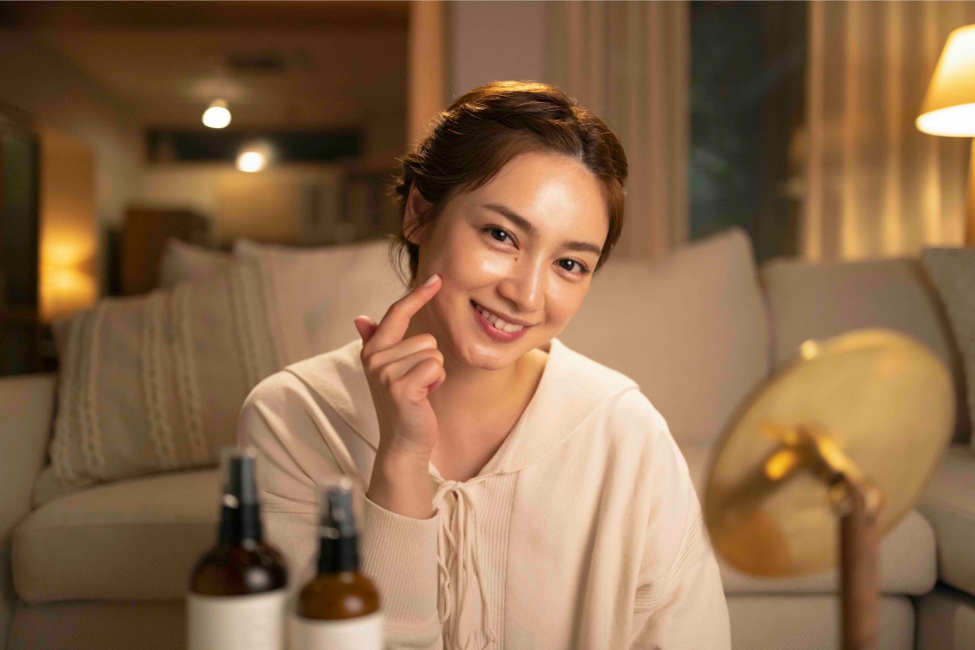 「私ももう半年くらい愛用させていただいているのですスタイリストさんからも褒められるんです。N organicはテクスチャーが好きです。とろみがあって… あとは香りがすっごい良いんですよね。柑橘っぽい感じ?そして何より、2ステップだけだから時短スキンケアできることですね。 男の子が家に3人もいると正直スキンケアしてる余裕もなくて…。 でもN organicなら毎日自分をいたわる時間を持てて、好きな肌でいられます。」