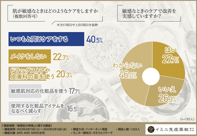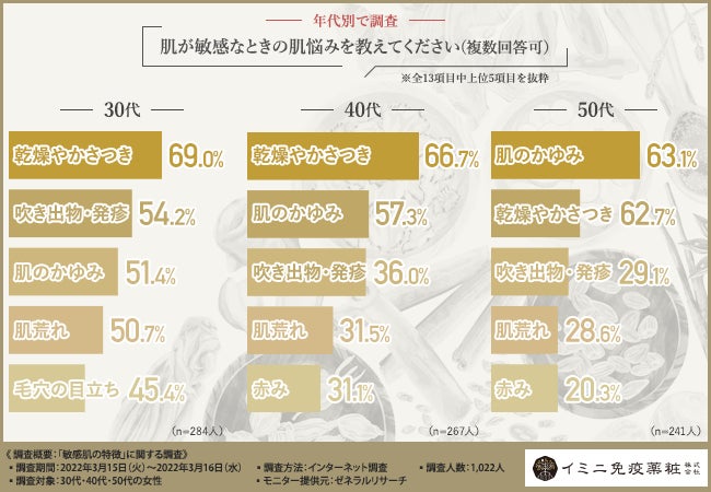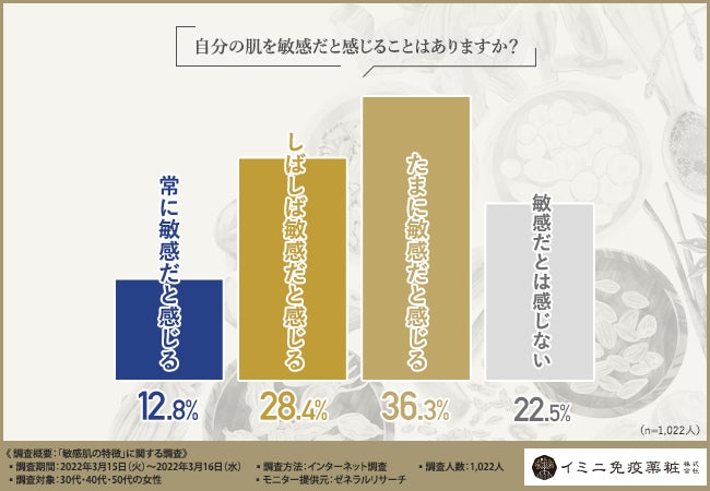 そこで今回、イミニ免疫薬粧株式会社(https://www.imini-immunity.jp/contents1.html)は、30代・40代・50代の女性を対象に、「敏感肌の特徴」に関する調査を実施しました。