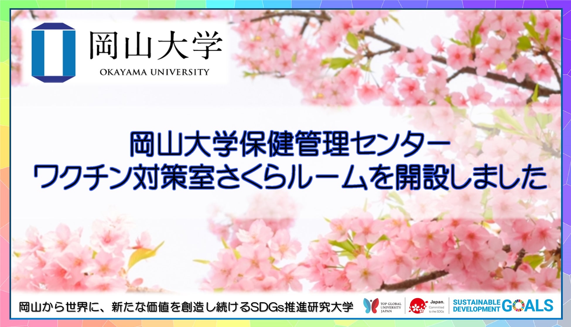 国立大学法人岡山大学(本部:岡山市北区、学長:槇野博史)は、2022年4月11日、本学津島キャンパスの大学会館に「保健管理センターワクチン対策室さくらルーム(通称:さくらルーム)」を開設しました。