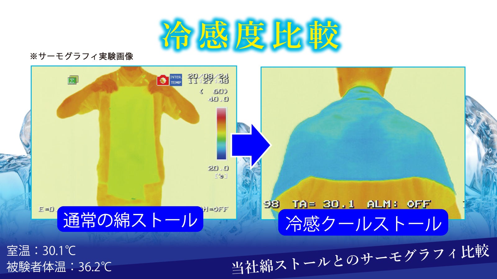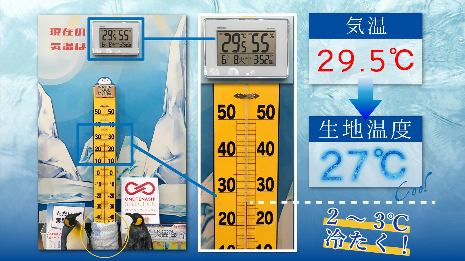 冷感パワーがー2~3℃ダウン!!実際の気温と比較しても-2~3℃という歴然の差!!
