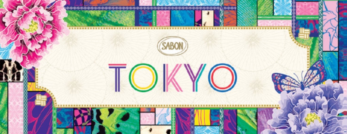TOKYO Collectionの華やかなデザインがプリントされたコットン生地。サボン製品を包んで、エコなラッピング材としても。(サイズ:35×90cm)