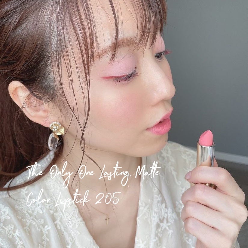 「写真では、205を使用しました。春夏にマストな見たまま発色の春カラーリップ。セミマットな質感だけど乾燥することなく、マシュマロみたいなスフレ唇にしてくれます。普段はオレンジやベージュ系のカラーを使うことが多いですが、このマットな質感のピンクなら大人の女性でもおしゃれに取り入れやすいです。」